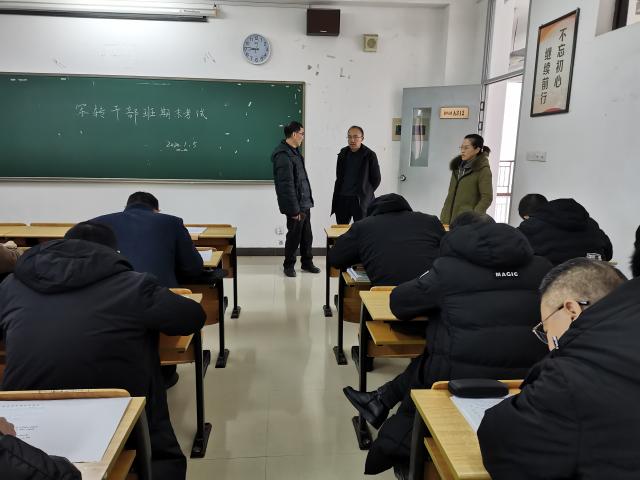 按照培训计划,军转干部培训班课程教学于元旦前结束,1月5-6日开展结业考试。考前学院教学科已做好命题、试卷印刷、考场安排等工作。考试中,分管学院工作的张发云副董事长在院领导的陪同下到考场巡查,并强调务必强化考风考纪,规范操作考试流程,抓实抓细考务工作。