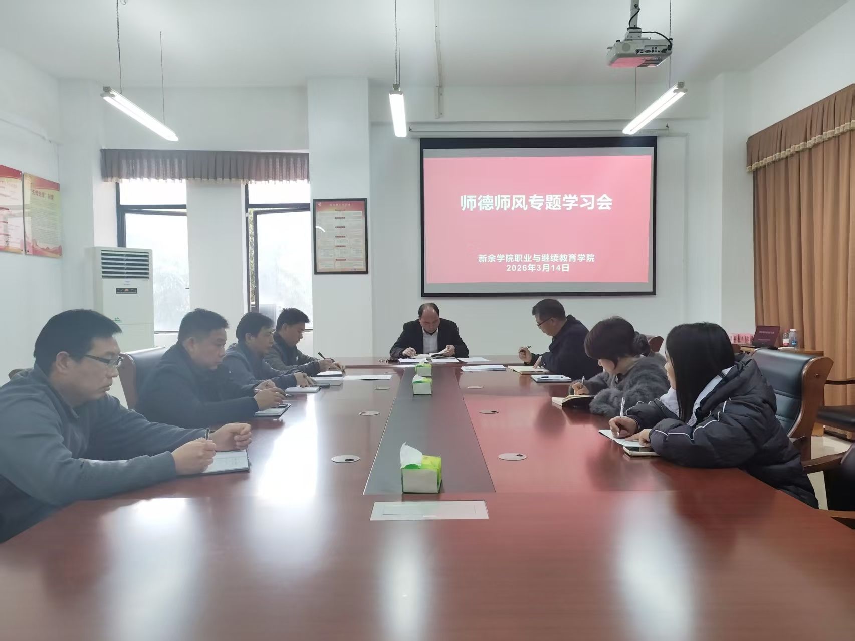 3月14日下午,2026世界杯官方合作网站在会议室召开师德师风建设专题学习会。学院全体教职工参加会议,会议由学院经理田建鑫主持。
