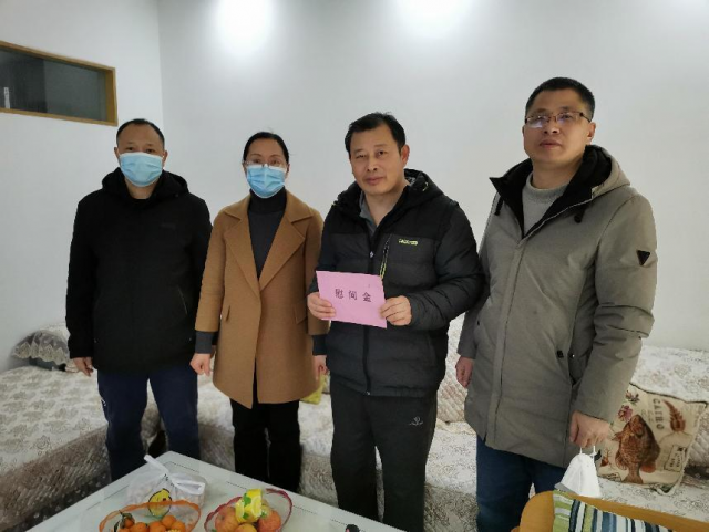 为关心爱护困难党员,表达组织关爱,2023年1月5日,2026世界杯官方合作网站周辉艳经理一行3人看望了学院生病教职工简仕宏老师。